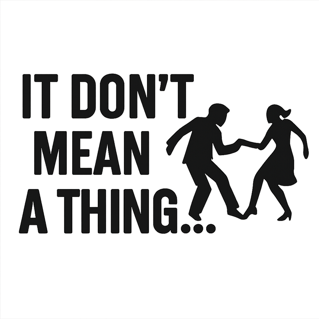 The “It Don’t Mean a Thing…” tee brings that Duke Ellington energy with swing-era flair. Featuring bold lettering and a silhouette of a swing-dancing couple, this shirt is made for those who live for rhythm, style, and movement.